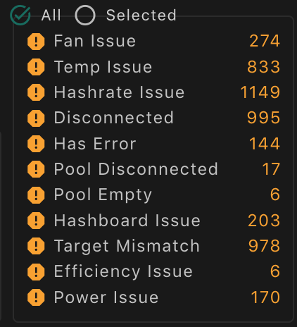 For example, if a miner is targeted to be ON but is detected as OFF (or vice versa), the system will generate a Target Mismatch error.